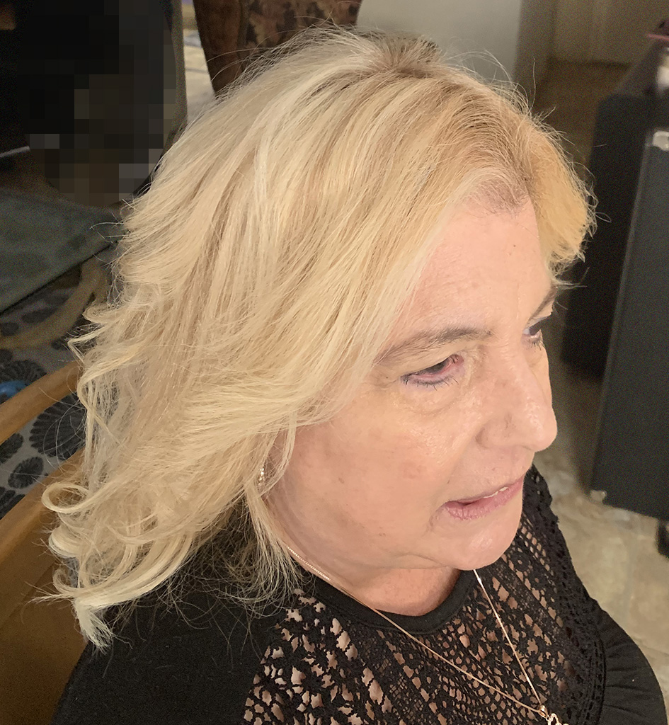 Marianne has significant hair loss on top; a topper is the perfect choice to integrate with her own hair. Custom color adds a seamless transition, making the topper undetectable.