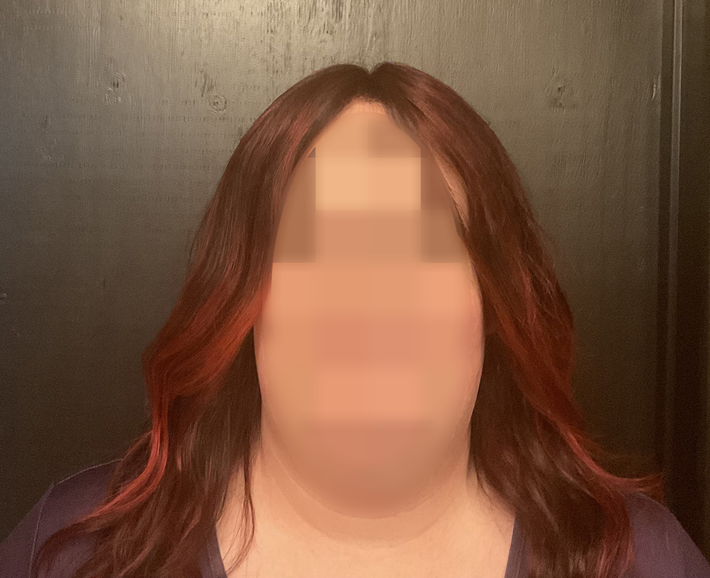 Samantha went with the full wig because of significant hair loss. She wanted a bright, playful color and loose curls. A topper has to be integrated into your hair and must match to be undetectable, but a full wig makes any fantasy hair possible.