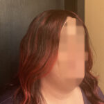 100% Human Hair Wig, Long, Black Cherry Base and Bright Cranberry Hi Lights