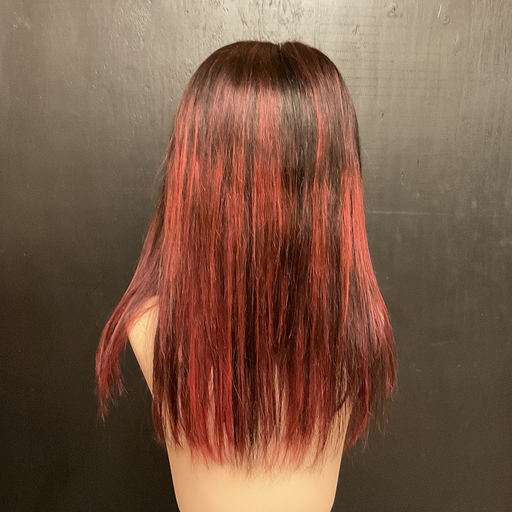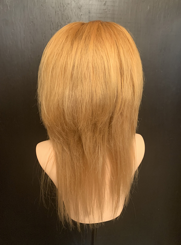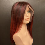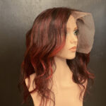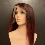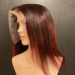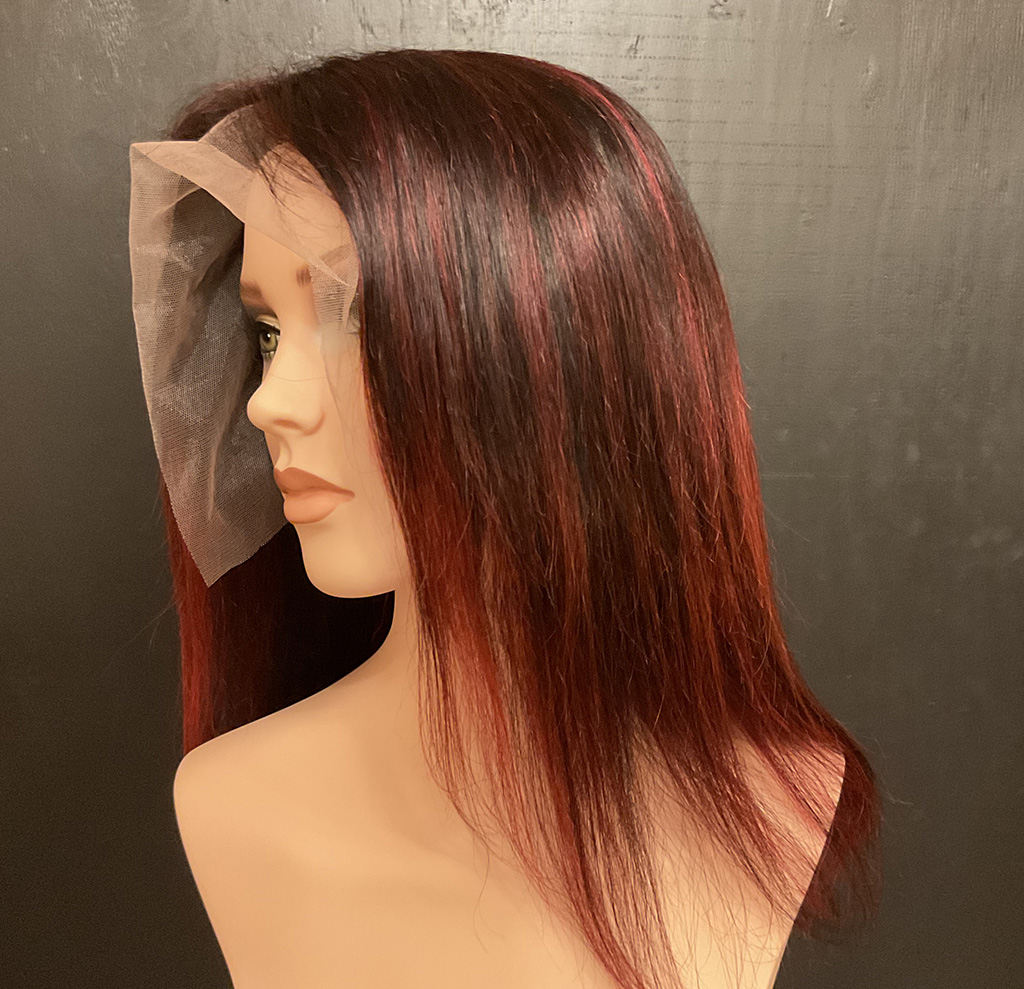 100% human hair wig. Ash blond on light brown base, 22” long, straight hair. 22” wig cap, medium size, 220% density. 13″ x 6″ lace front, combs for secure fit. An adjustable strap can be added for an additional cost